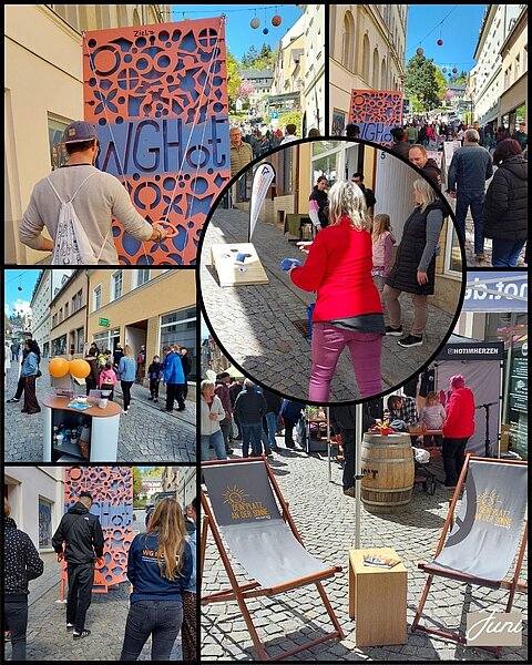 Auch unsere Wohnungsgesellschaft war mit einem Stand vertreten und Teil des bunten Treibens. Die Weinkellerstraße verwandelte sich in eine lebendige Spielestraße für Groß und Klein. An unserem Stand konnten sich die Gäste am Geschicklichkeitslabyrinth und beim Cornhole ausprobieren und dabei attraktive Preise gewinnen. Direkt daneben sorgten die Stadt Hohenstein-Ernstthal und der AMC Sachsenring mit ihrem Reifenrollen für zusätzliche Unterhaltung. Besonders beliebt waren hier die hochwertigen Gewinne, darunter Tickets für die MotoGP, ein Fahrsicherheitstraining sowie Kinogutscheine.
